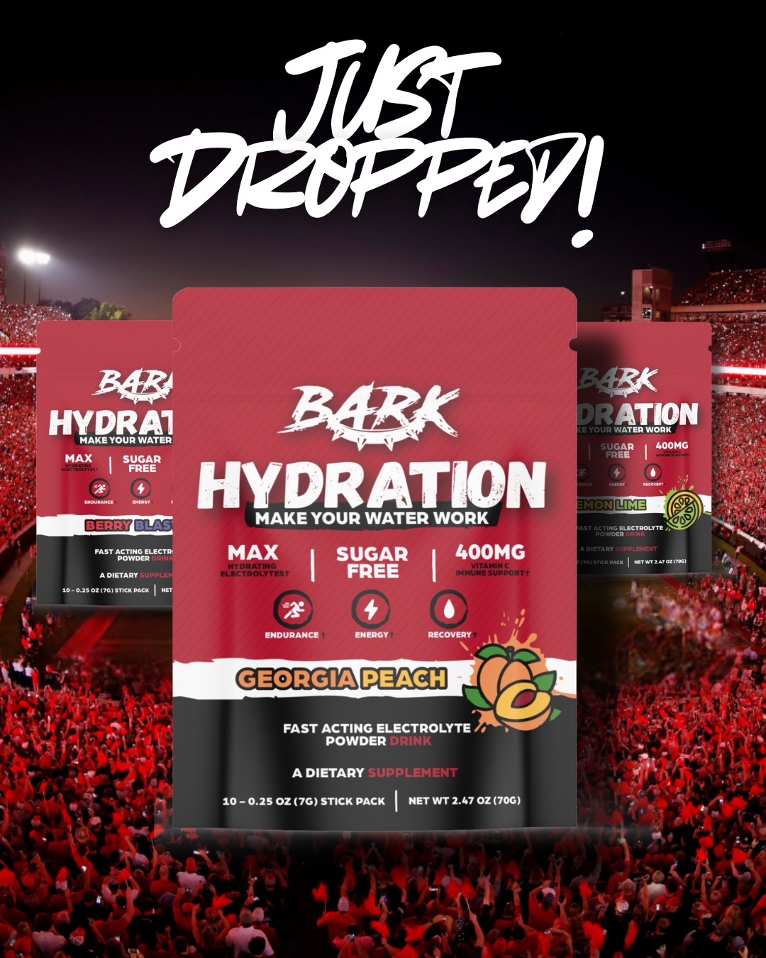 You asked. We listened! Now get all of the great Bark Hydration flavors in smaller "try it" size! The BEST Sugar Free Hydration Stick Pack made JUST for Georgia Fans! Go DAWGS!